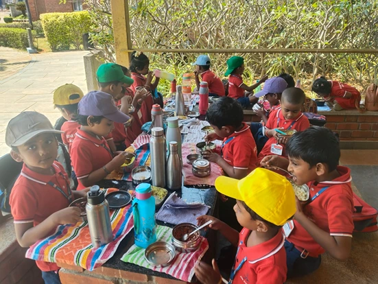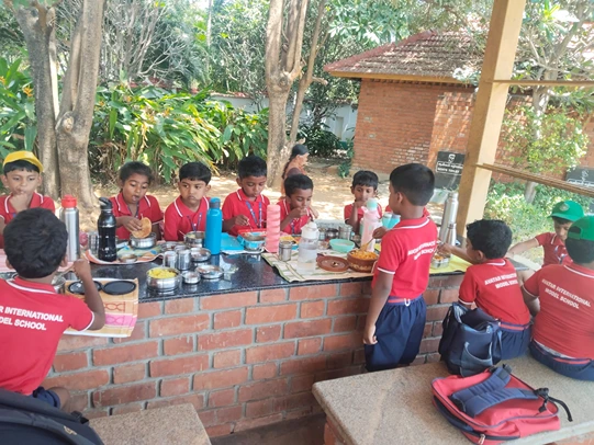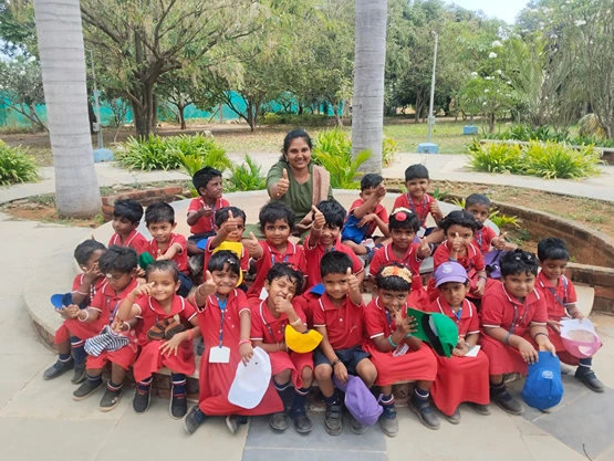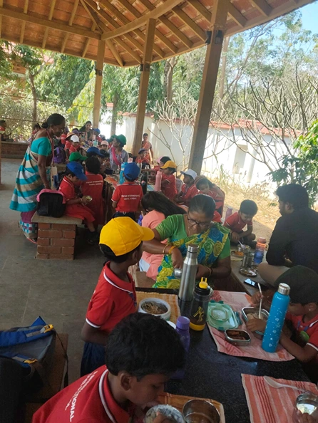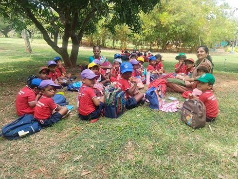 After visiting the aquarium, we proceeded to the Eco Park, Kanyakumari. Upon arrival, the children had their lunch in a calm and pleasant environment. Following lunch, they had great fun playing on the slides, swings, merry-go-round, and other play equipment. The children also enjoyed walking amidst nature while singing rhymes, which made the experience lively and joyful.